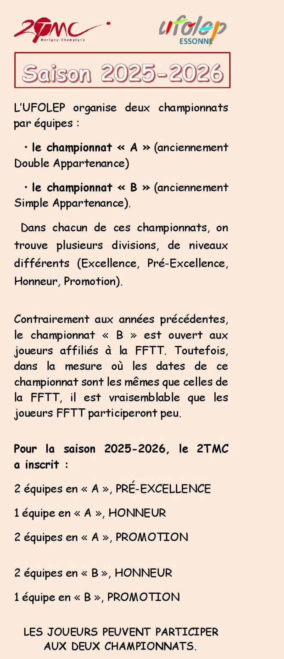 Bienvenue sur la 3ème version du site Internet du 2TMC, Club de Tennis de Table de Morigny Champigny (91150).