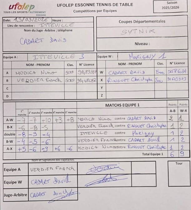 Le prochain adversaire sera soit une autre équipe d’Itteville, soit celle d’Angerville Pussay.