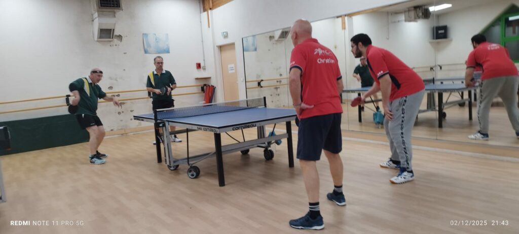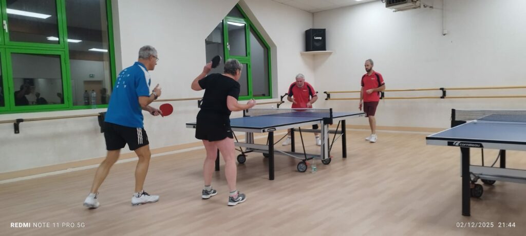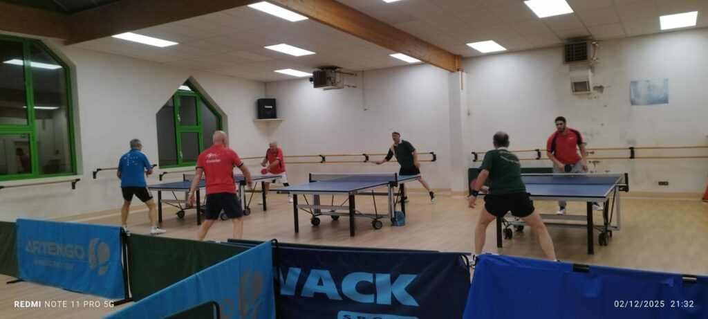 Mais il faut tempĂ©rer ce rĂ©sultat brut. En ce jour anniversaire de la victoire d’Austerlitz, cette dĂ©faite n’est pas du tout Waterloo ! Quatre matchs se sont jouĂ©s en cinq sets, notamment ces deux belles perfs de Farid, bien mal embarquĂ© contre Laurent, et de Philippe, qui au terme d’un match palpitant contre Nathalie, s’est imposĂ© 11 Ă 8 Ă la belle. + 8 points de classement pour Farid, + 10 points de classement pour Philippe.