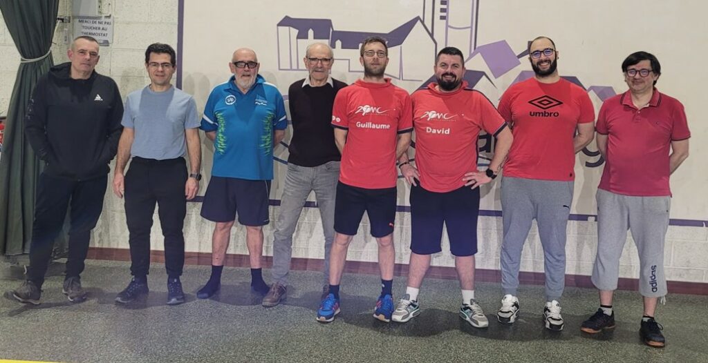 En haut, Guillaume DEN. et Kamel ont souffert contre Joaquim et Ludovic, un peu mieux classĂ©s qu’eux. La seule victoire est Ă mettre sur le compte de Kamel, avec une perf en cinq sets contre Ludovic.