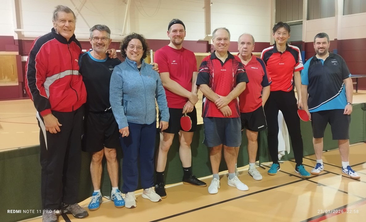 Rien à reprocher à Steve qui remporte tous ses matchs, ni à Guillaume qui gagne ses deux simples. C’est donc ailleurs qu’il faut chercher les points négatifs. Chez les anciens, Jean-Michel et Patrick, incapables de remporter leurs simples. Nous tenons à féliciter Gérard qui a vaincu Patrick en cinq sets.