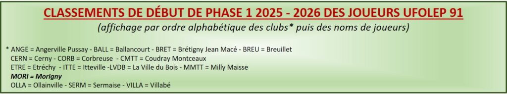 (*) joueurs FFTT : le classement ne tient pas compte des résultats en UFOLEP