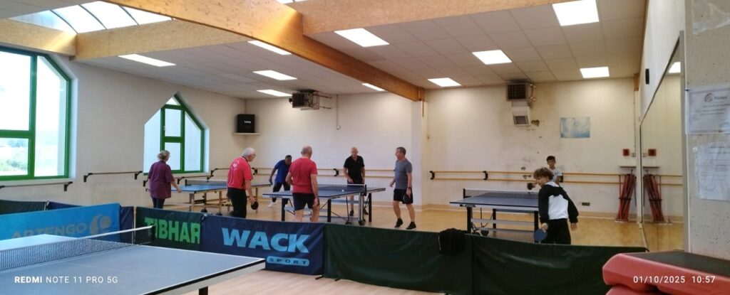 Certains malintentionnés ont prématurément attribué ce créneau aux retraités. En effet, qui est disponible pour jouer au tennis de table un mercredi matin ? Eh bien les jeunes, figurez-vous (ce qui ne signifie pas que les retraités de ce club soient vieux 😉). En effet, Lucas et Ruben ont rejoint les plus anciens. Douze participants au total ! Il aura donc fallu ajouter une 5ème table pour contenter tout le monde.